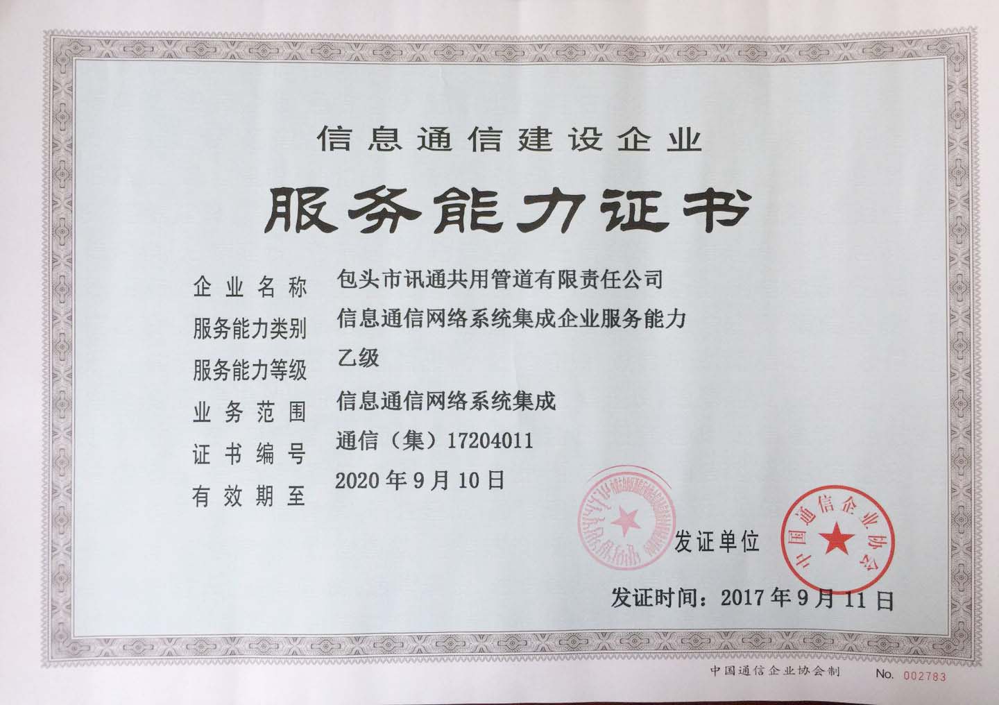 服務(wù)能力證書