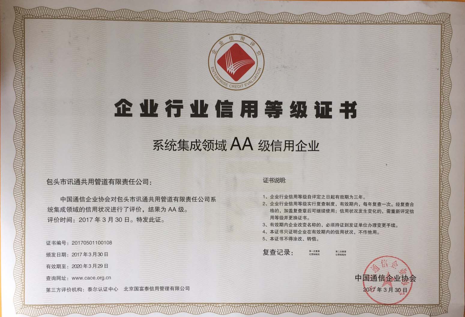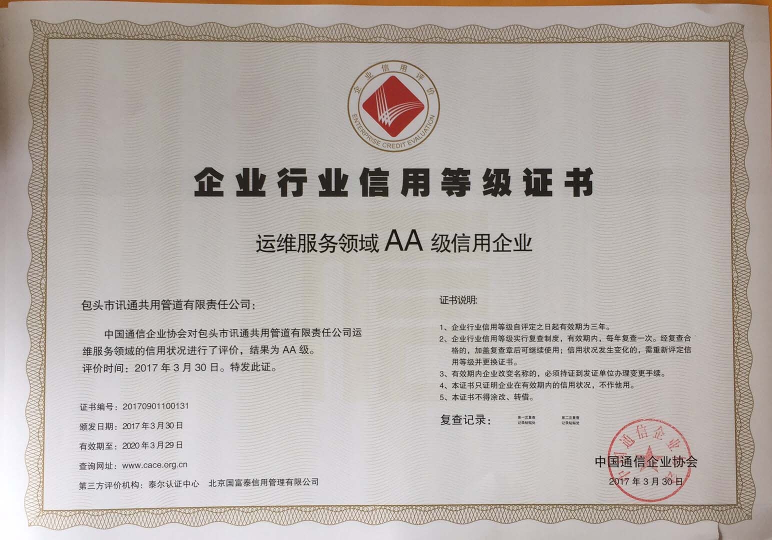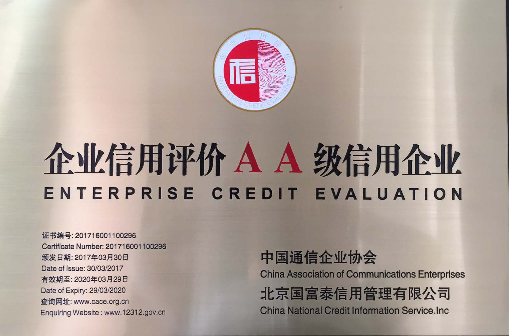 企業(yè)信用評(píng)價(jià)AA級(jí)信用企業(yè)