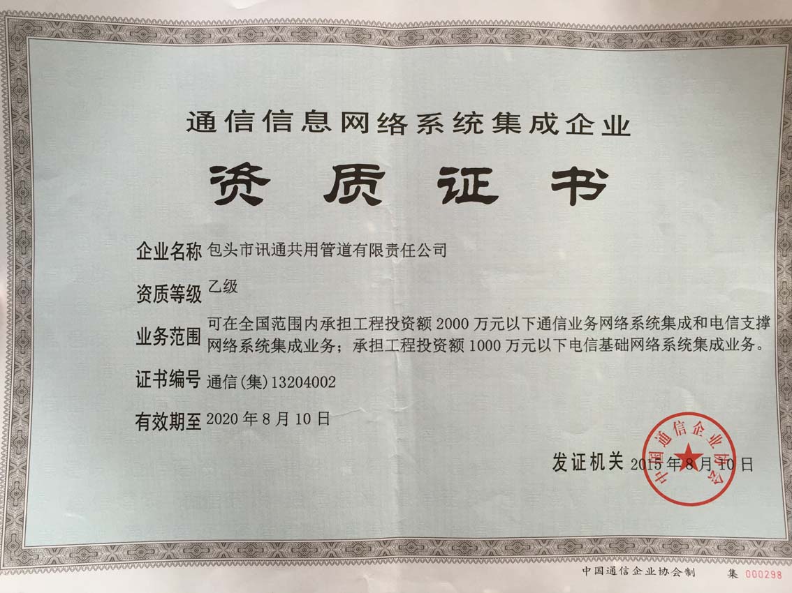 公司:包頭市訊通共用管道有限責(zé)任公司 手機(jī):0472-2209161 地址:包頭市稀土高新區(qū)一區(qū)希望路3號(hào)